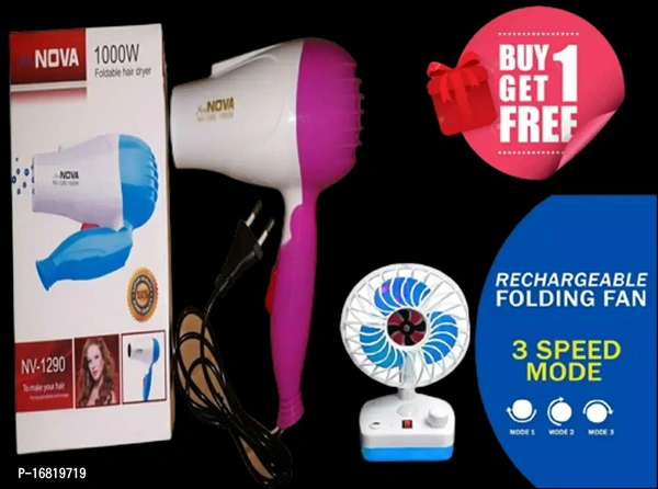 Buy 1 Get 1 Free Hair Dryer NV -1290 And Rechargeable Folding Mini Fan Type: OthersWithin 6-8 business days However, to find out an actual date of delivery, please enter your pin code.