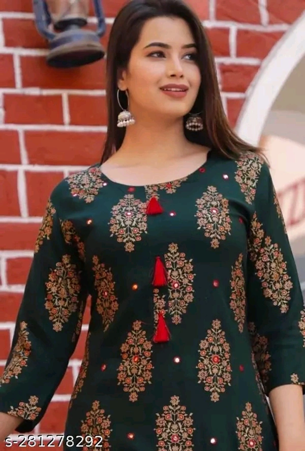 Catalog Name:*Aagam Fashionable Kurtis*Fabric: RayonSleeve Length: Three-Quarter SleevesPattern: EmbellishedCombo of: SingleSizes:XS (Bust Size: 34 in, Size Length: 41 in) S (Bust Size: 36 in, Size Length: 41 in) M (Bust Size: 38 in, Size Length: 41 in) L (Bust Size: 40 in, Size Length: 41 in) XL (Bust Size: 42 in, Size Length: 41 in) XXL (Bust Size: 44 in, Size Length: 41 in) Easy