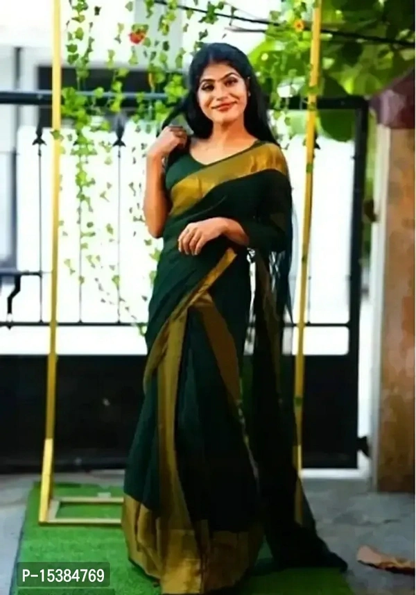 Chiffon Zari Border Saree with Blouse Piece Fabric: Chiffon Type: Saree with Blouse piece Style: ZariSaree Length: 5.5 (in metres)Blouse Length: 0.8 (in metres)Within 6-8 business days However, to find out an actual date of delivery, please enter your pin code.null