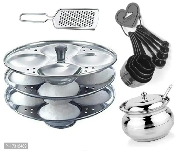 Combo Of Stainless Steel 3 Plate Idli Baking Tools And Accessories Stand (12 Slot), Steel Cheese Grater, Stainless Steel Ghee/Oil Pot With Plastic 8Pcs Measuring Cup And Spoon Material: Stainless Steel Type: Jars & ContainersWithin 6-8 business days However, to find out an actual date of delivery, please enter your pin code.Combo Of Stainless Steel 3 Plate Idli Baking Tools And A