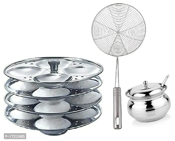 Combo Of Stainless Steel 4 Plate Idli Baking Tools And Accessories Stand (16 Slot), Stainless Steel Deep Fry Strainer With Stainless Steel Ghee/Oil Pot Material: Stainless Steel Type: Jars & ContainersLength: 20.0 (in cm)Width: 15.0 (in cm)Height: 10.0 (in cm)Within 6-8 business days However, to find out an actual date of delivery, please enter your pin code.Combo Of Stainless St
