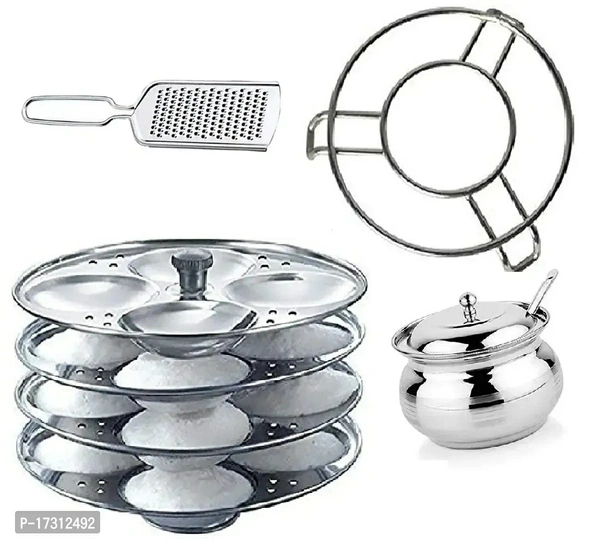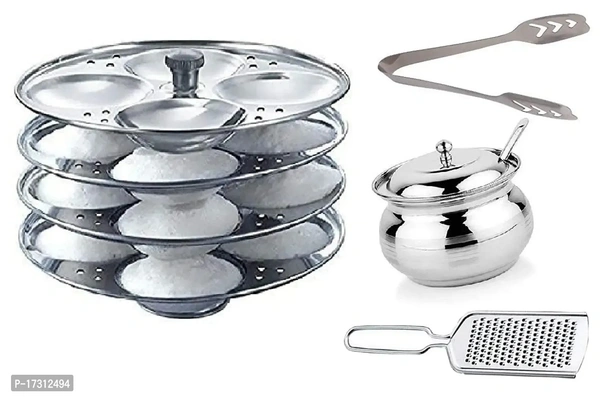 Combo Of Stainless Steel 4 Plate Idli Baking Tools And Accessories Stand (16 Slot), Steel Cheese Grater, Stainless Steel Momos/Ice Tong With Steel Ghee/Oil Pot Material: Stainless Steel Type: Jars & ContainersLength: 20.0 (in cm)Width: 15.0 (in cm)Height: 10.0 (in cm)Within 6-8 business days However, to find out an actual date of delivery, please enter your pin code.Combo Of Stai