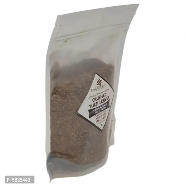 Crushed Tulsi Leaves (100 Gm) Ingredient Type: Vegetarian Packaging Type: PouchQuantity (gm): 100.0 (in grams)Quantity (kg): 0.1 (in kg)Within 6-8 business days However, to find out an actual date of delivery, please enter your pin code.The anti-bacterial properties of tulsi helps to fight pimples, acne and eczema, remove toxins from blood, which in turn prevents pimples and acne