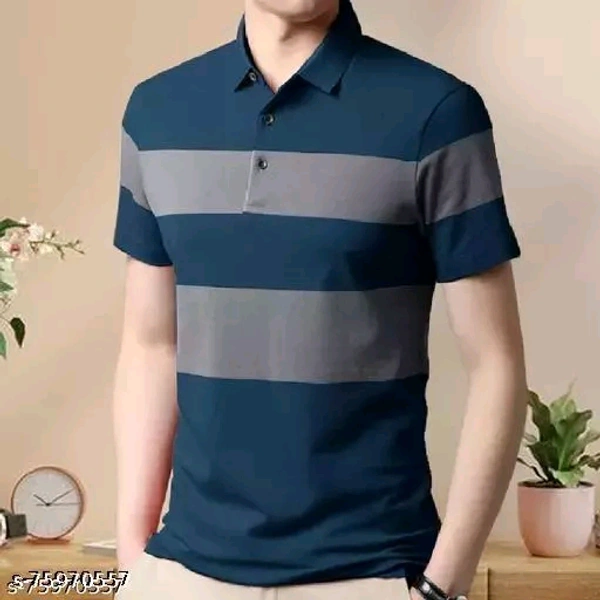 EyeBogler Horizontal Stripes Polo Blue Tshirts for menName: EyeBogler Horizontal Stripes Polo Blue Tshirts for menFabric: CottonSleeve Length: Short SleevesPattern: PrintedNet Quantity (N): 1Sizes:S (Chest Size: 18 in, Length Size: 26.5 in) M (Chest Size: 19 in, Length Size: 27 in) L (Chest Size: 20 in, Length Size: 27.5 in) XL (Chest Size: 21 in, Length Size: 28 in) Durable stitch