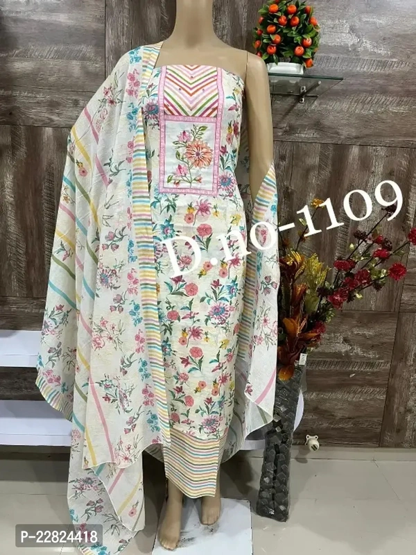 Fancy Cotton Unstitched Dress Material for Women Fabric: Cotton Type: Dress Material with DupattaTop Length: 2.5 (in metres)Bottom Length: 2.25 (in metres)Dupatta Length: 2.2 (in metres)Within 6-8 business days However, to find out an actual date of delivery, please enter your pin code.Fancy Cotton Unstitched Dress Material for Women, Top fabric - cotton Bottom fabric- cotton Dup