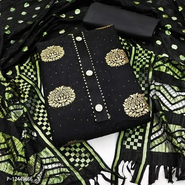Fancy Jacquard Unstitched Dress Material for Women Fabric: Jacquard Type: Dress Material with DupattaTop Length: 2.25 (in metres)Bottom Length: 2.25 (in metres)Dupatta Length: 2.25 (in metres)Within 6-8 business days However, to find out an actual date of delivery, please enter your pin code.Fancy Jacquard Unstitched Dress Material for Women