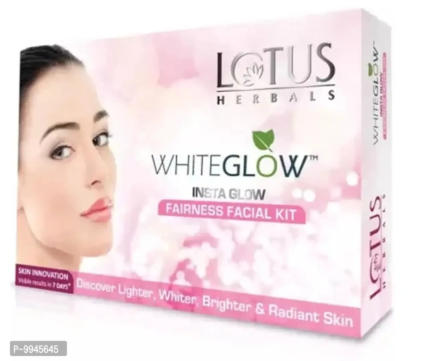 LOTUS HERBALS WHITEGLOW INSTA GLOW FACIAL KIT _01 WITH FIVE EASY STEPS Type: Facial Kits Suitable For: All Skin TypeWithin 6-8 business days However, to find out an actual date of delivery, please enter your pin code.Whiteglow Insta Glow Fairness Facial Kit is a unique facial to discover lighter whiter, brighter and truly radiant skin.This Facial gives the complete benefit of the