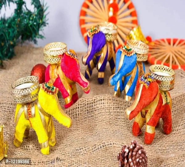 The Click India Tealight Candle Holder for Home Decoration Elephant Candle Holder Candle Tea Light Holder Home Decor Diwali Decoration Items| Diwali Gifts (5 Velvet Elephant tealight)Size: 3 x 3Within 6-8 business days However, to find out an actual date of delivery, please enter your pin code.• Elephant/ Puppet Tealight Candle Holder with its beautiful design and traditional look