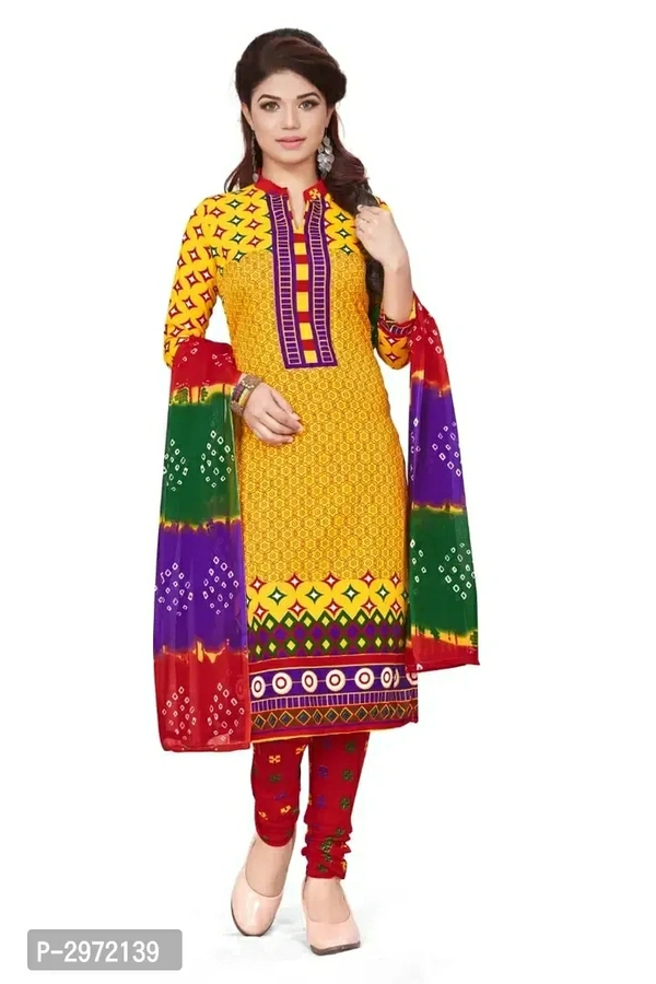 Trendy Yellow Printed Crepe Dress Material with DupattaTop Length: 2.25 (in metres)Bottom Length: 2.0 (in metres)Dupatta Length: 2.0 (in metres)Within 6-8 business days However, to find out an actual date of delivery, please enter your pin code.Trendy Yellow Printed Crepe Dress Material with Dupatta